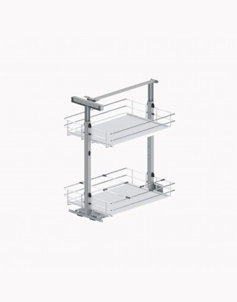 If you want to keep your countertops clean while maximizing space, this pull-out drawer organizer is an ideal choice. Available in white finish, it comes in three sizes (300mm, 400mm and 200mm). Featuring a REJS full-extension runner with a soft-close mechanism, it can hold up to 25kg (55.11 lbs) of weight. The baskets can be adjusted to various heights, and the grey-colored frame complements the set of two baskets included. This versatile organizer not only keeps your kitchen essentials neatly organized but also ensures easy access, making it a practical and stylish addition to any modern kitchen.